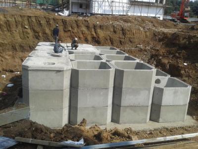 1、施工周期较短:能够快速停止施工,基本垫层做好后即可现场安装,3-5小时即可实现组装,当天就可回填。按每个100m3规格盘算,一天可安装2-3套。